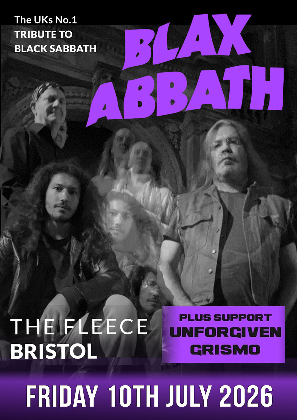 Capturing the unique power of Ozzy Osbourne and the true Tony Iommi sound, Blax Abbath, the UKs No.1 Black Sabbath tribute band, faithfully re-create the most memorable Black Sabbath songs and gut-wrenching guitar riffs in the History of Heavy Metal.